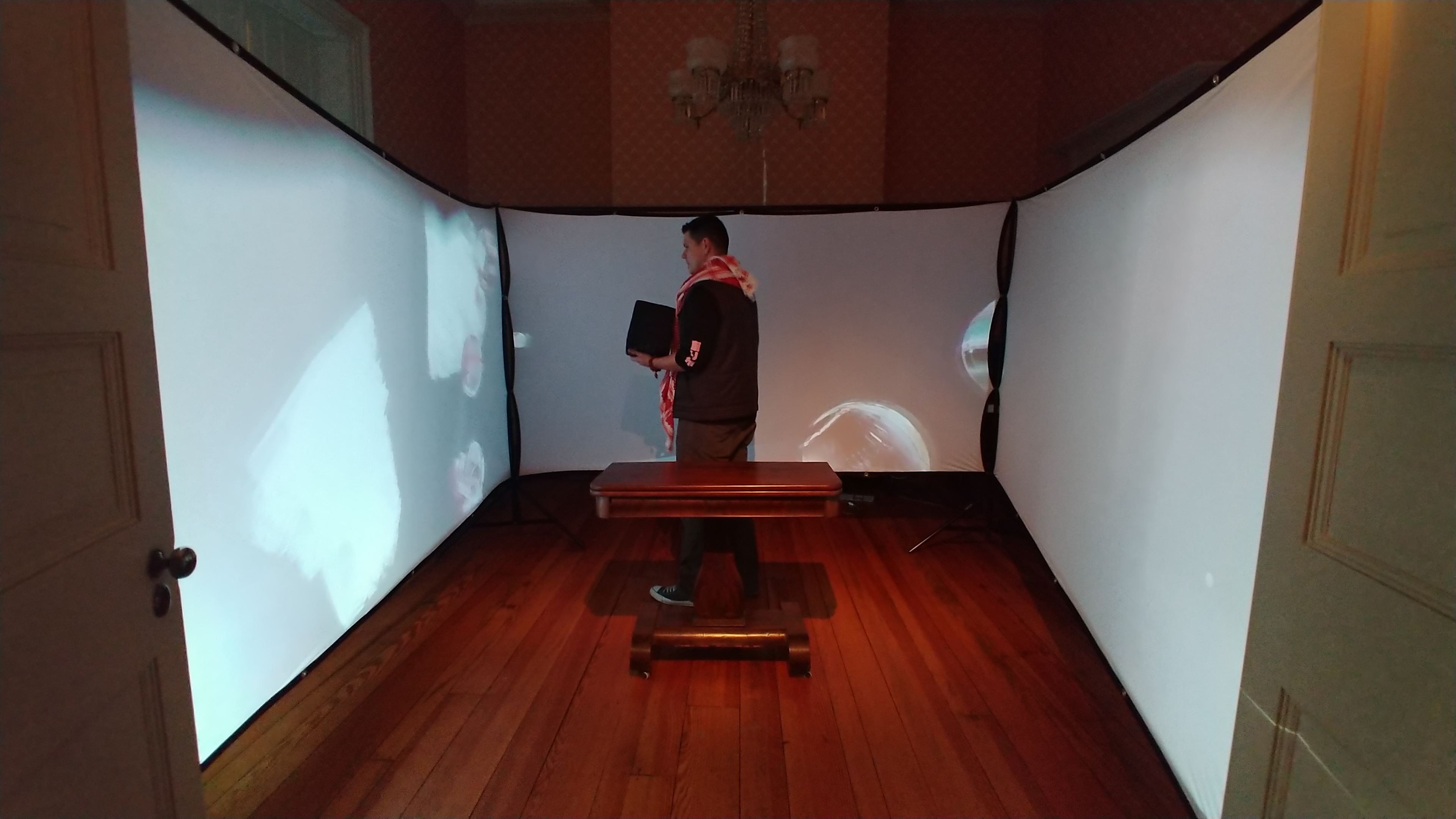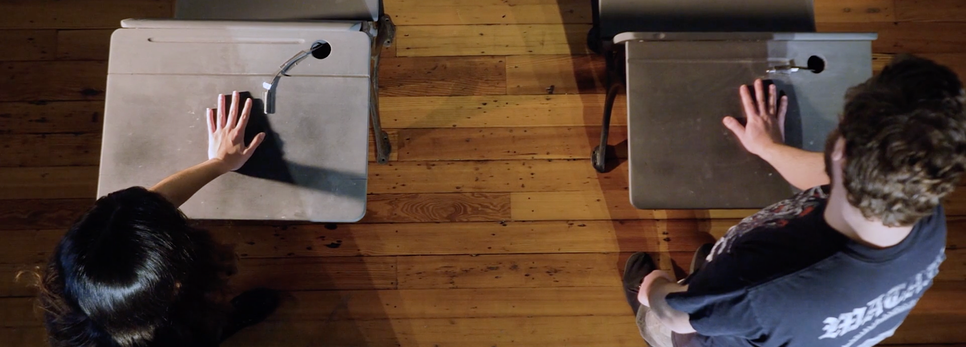 Participants are invited to hold the hands of the sculpted video display to look around a 360° video of the Clayborn Temple and listen to a speech by Martin Luther King Jr.